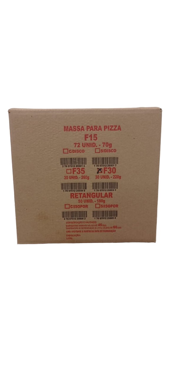 Caixa de massas pré-assadas brotinho, contém 3 pacotes de 24 unidades totalizando 72 unidades de 15 cm na caixa.